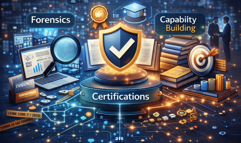 Key offerings: Forensic accounting, fraud detection, ISO & ESG certifications, professional training, and leadership development.